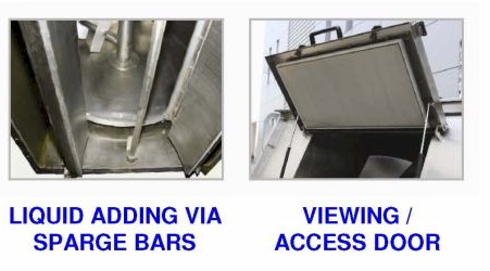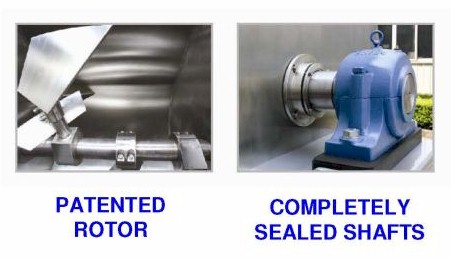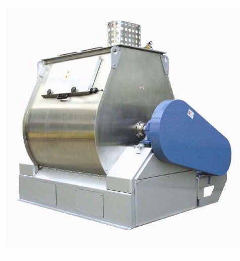 Available are either single or double shafted paddle mixers (twin shaft is the white steel unit shown in the photo). The single paddle design (shown in the stainless steel photo) is suited to blending of high levels of liquid ingredients. Suited to high speed and high efficiency mixing applications to achieve high quality with minimal power consumption. Features compact size with clean lines, stable performance and low noise and no dust emissions. The single shaft mixers on offer range in capacities from 100 to 4000kgs per batch fitted with the relevant drive from 2.2kW to 45.0kW. The twin shaft paddle mixers come in capacities from 25 to 3000kg per batch. These provide efficient mixing when filled to 30% either side of the nominal capacity and come with fitted with the relevant drive from 0.75kW to 45.0kW.