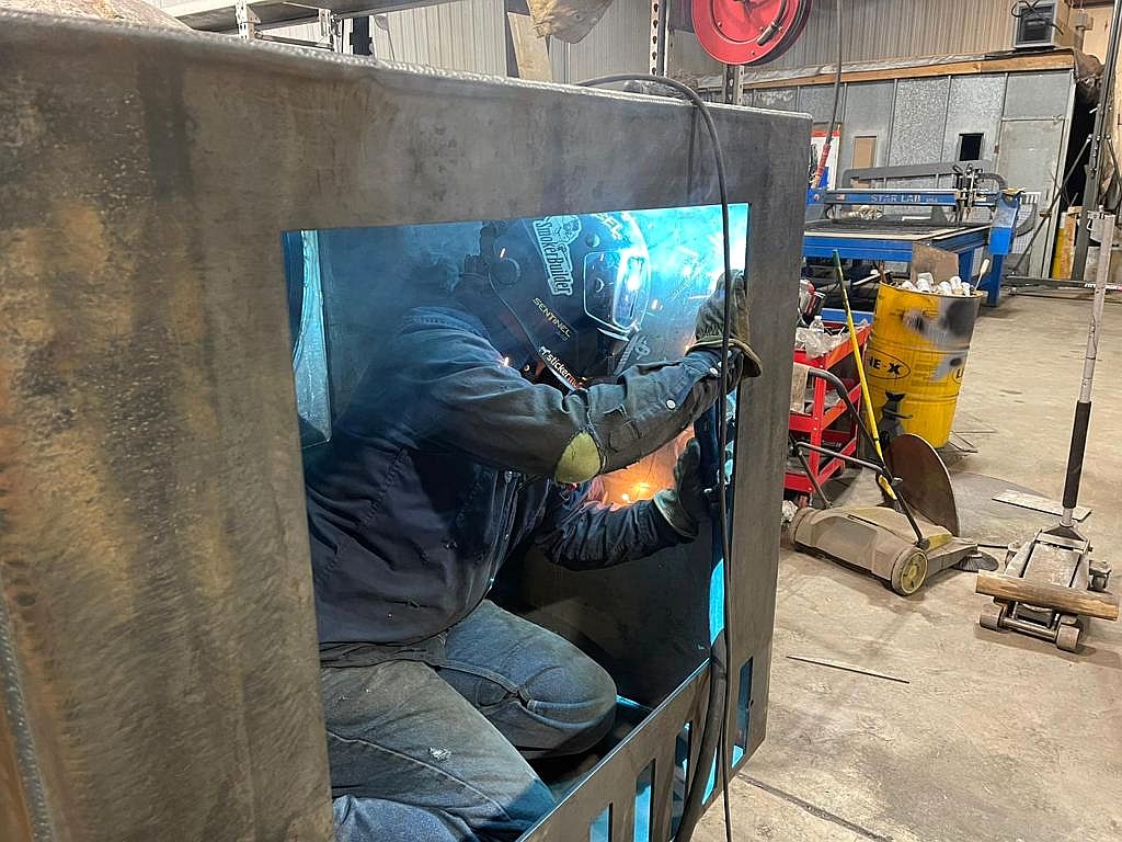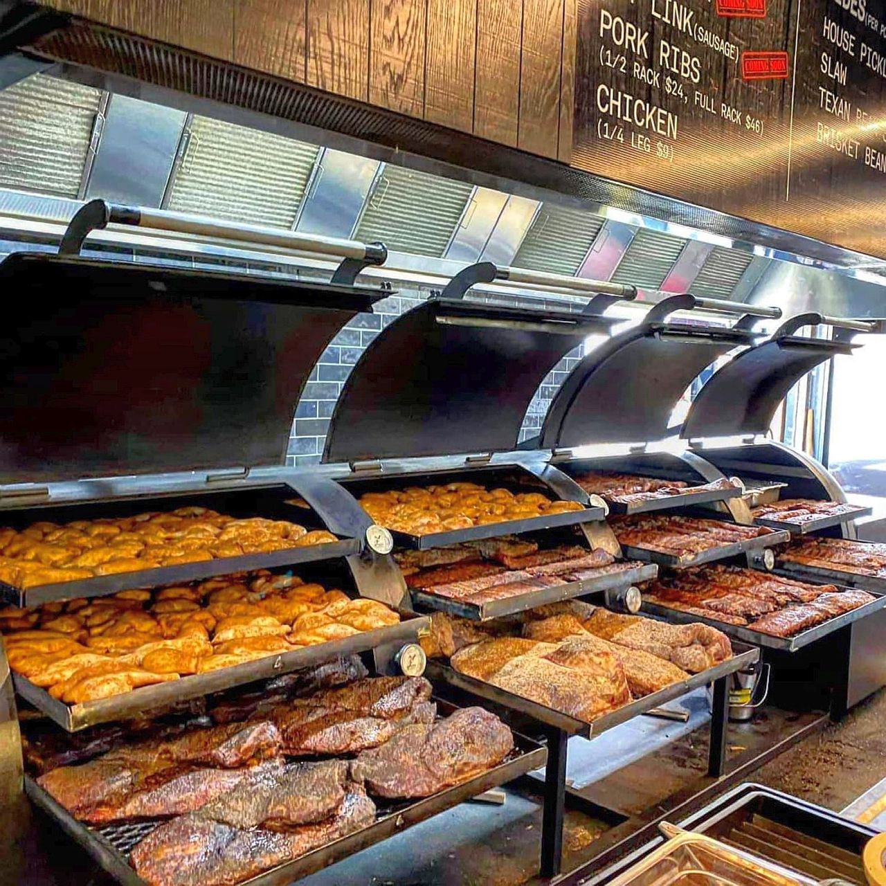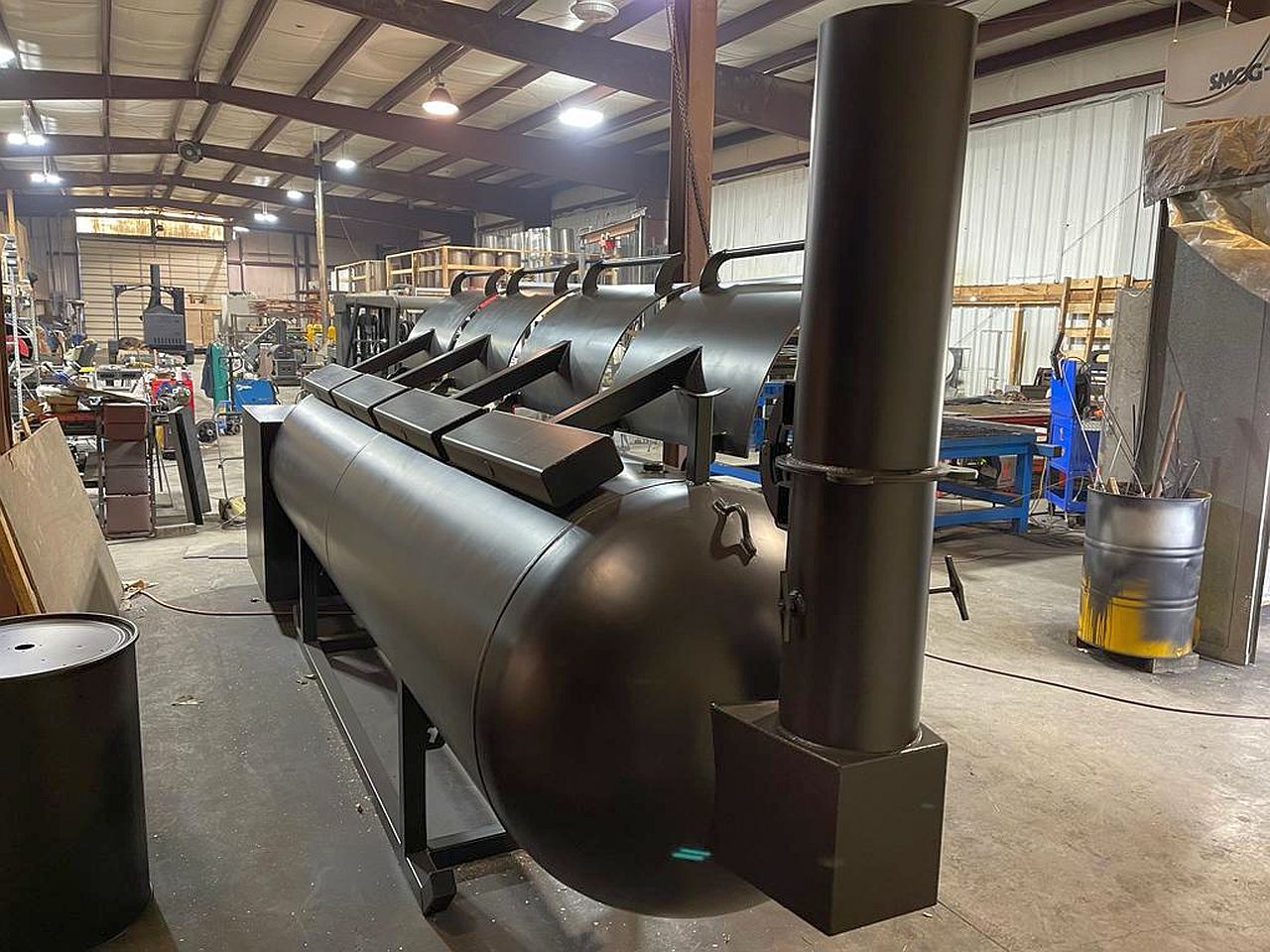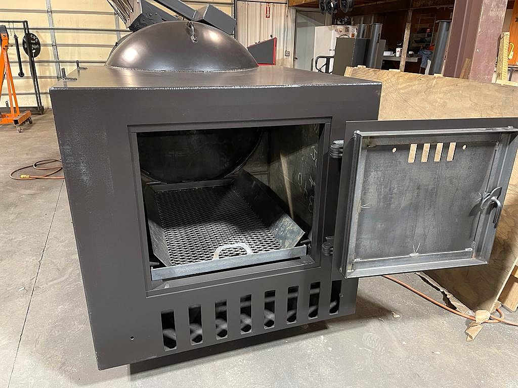 When fully loaded it can hold up to one ton of meat. It has two cooking levels which are on pull out grids which are accessed and serviced by four (4x) counter balanced doors.