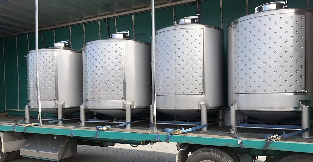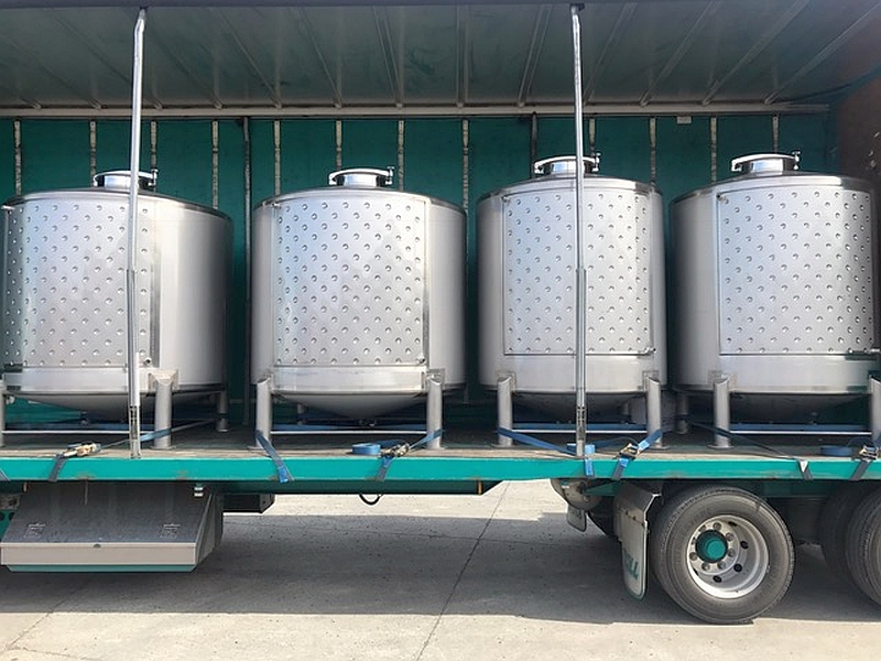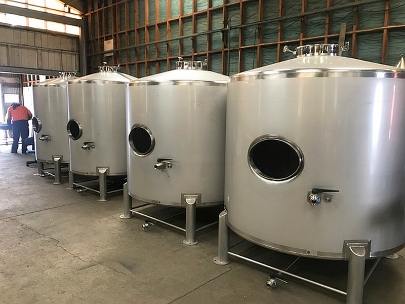 These new 3,500 litre stainless steel (grade 304) tanks comes with 2300mm x 1200mm dimple cooling pad. Have side door (440mm x 340mm) and 4 inch RJT male inlet at top. Has sloping floor to central, one and a half inch, RJT male outlet and racking valve with one and a half inch RJT male outlet and a 75mm RJT fitting at top. Have four 80mm diameter legs.
