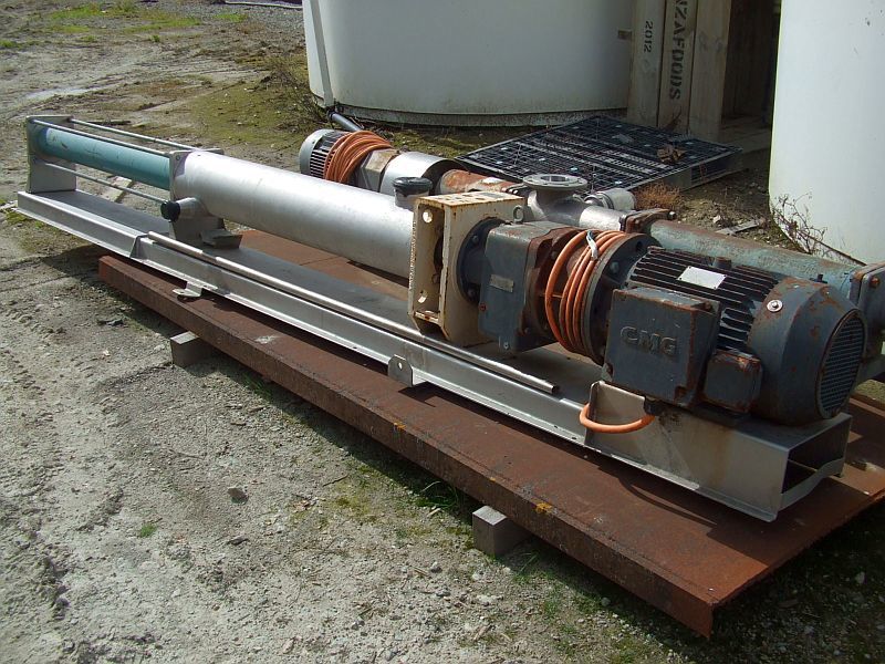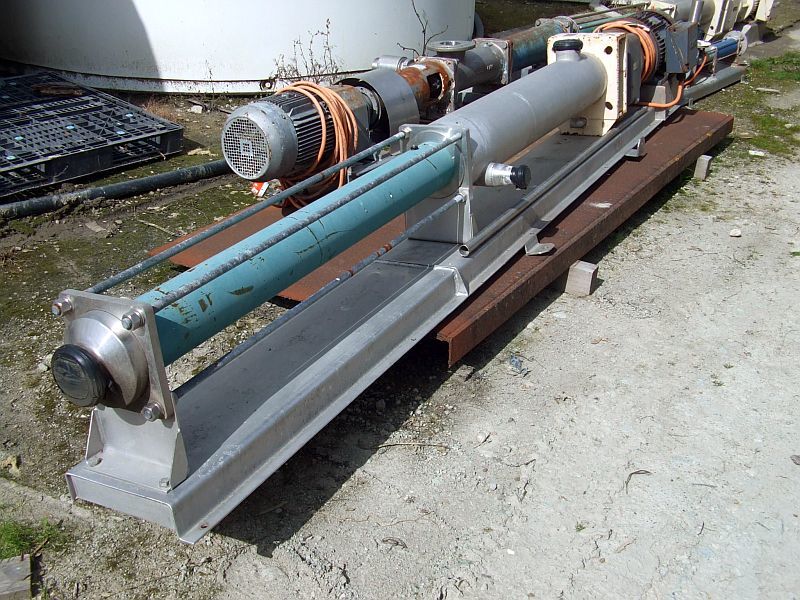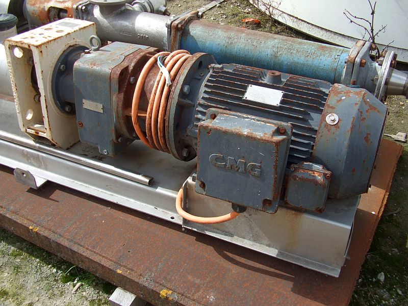 This used / secondhand Netzsch (model NMO63BYO4S24F) progressive cavity pump is stainless steel contact parts and has approx 100mm diameter inlet and outlet. Has flexishaft and is directly driven by a 3 phase, 15kW CMG geared motor 1470 : 9.68 ratio (152.5 rpm). Our contact has outlined the pump was operating fine when last in use and has also conveyed: Netzsch Nemo pump, model NM063BY04S24F. Body - cast Iron, pump housing - stainless steel, rotor- stainless steel hard chromed 80 degree relieved, stator - NBR, capacity 0.524 litres per revolution. Year - 2009. Nord motor / gearbox type SK42F-AL-160/L4, 15kW, 152 rpm. Flexishaft, 79.6 litres per minute. Shaft with 2 x B joints.