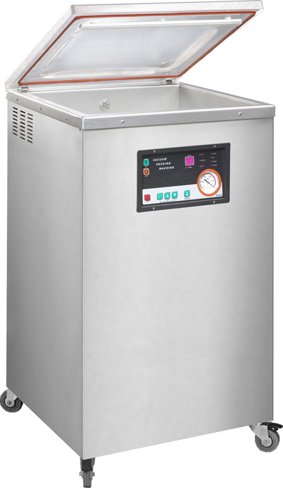 These NEW floor mounted vacuum packers have a single sealing bar and a vacuum chamber 500mm wide x 600mm deep x 140mm high at the highest point. Is fitted with a 480mm x 8mm sealing bar along with 20m3/h capacity vacuum pump.